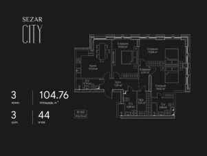 Продается 3-комнатная квартира в ЖК СЕЗАР СИТИ на 44 этаже. Общая площадь квартиры составляет 104,76 кв.м. Квартира без отделки. Срок сдачи - 2027 год.