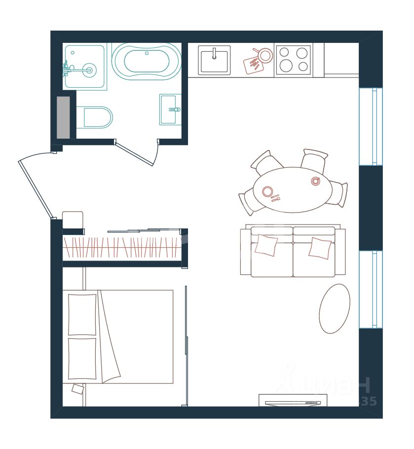 Апартаменты площадью 24.31 кв.м. с отличной планировкой.
