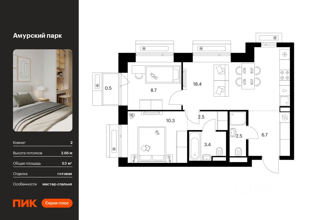 Продаётся 2-комн. квартира площадью 53 кв.м на 7 этаже 12 этажного дома (Корпус 4.2, Секция 2) проекта ПИК Амурский парк. Светлый просторный подъезд на уровне земли, функциональная планировка, большие окна, c отделкой.
