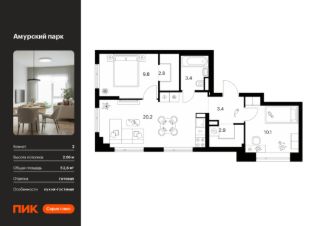 Продаётся 2-комн. квартира площадью 52,6 кв.м на 25 этаже 27 этажного дома (Корпус 4.5, Секция 6) проекта ПИК Амурский парк. Светлый просторный подъезд на уровне земли, функциональная планировка, большие окна, c отделкой.