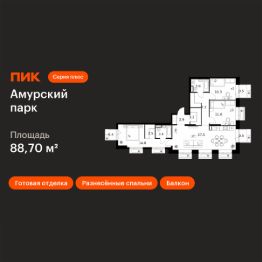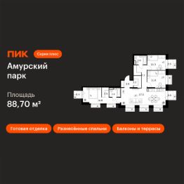 Продаётся 3-комн. квартира площадью 88,7 кв.м на 11 этаже 19 этажного дома (Корпус 4.4, Секция 5) проекта ПИК Амурский парк. Светлый просторный подъезд на уровне земли, функциональная планировка, большие окна, c отделкой.