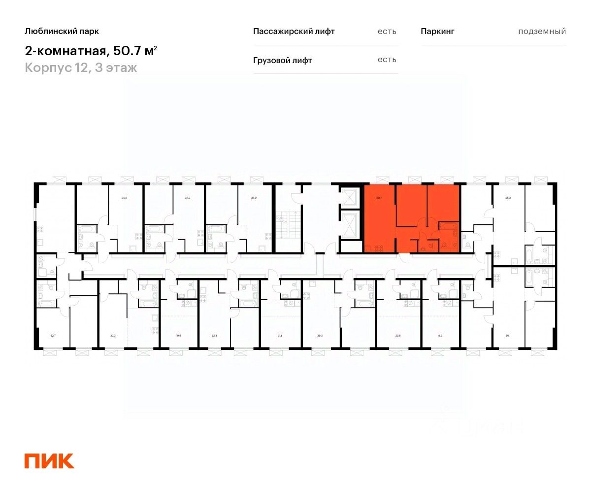 Продаётся 2-комн. квартира площадью 50,7 кв.м на 3 этаже 16 этажного дома (Корпус 12, Секция 7) проекта ПИК Люблинский парк. Светлый просторный подъезд на уровне земли, функциональная планировка, большие окна, c отделкой.