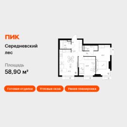 Продаётся 2-комн. квартира площадью 58,9 кв.м на 15 этаже 16 этажного дома (Корпус 2.1.5, Секция 5) проекта ПИК Середневский лес. Светлый просторный подъезд на уровне земли, функциональная планировка, большие окна, c отделкой.