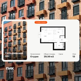 Продаётся квартира-студия площадью 29,5 кв.м на 16 этаже 16 этажного дома (Корпус 2.1.1, Секция 1) проекта ПИК Середневский лес. Светлый просторный подъезд на уровне земли, функциональная планировка, большие окна, c отделкой.
