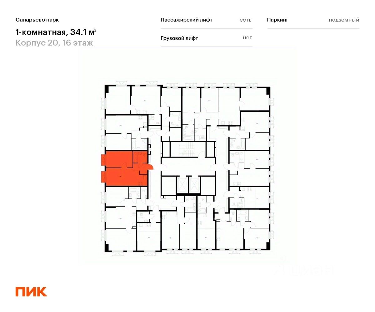 Продаётся 1-комн. квартира площадью 34,1 кв.м на 16 этаже 17 этажного дома (Корпус 20, Секция 1) проекта ПИК Саларьево парк. Светлый просторный подъезд на уровне земли, функциональная планировка, большие окна, c отделкой.