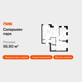 Продаётся 2-комн. квартира площадью 56,9 кв.м на 6 этаже 14 этажного дома (Корпус 57.5, Секция 5) проекта ПИК Саларьево парк. Светлый просторный подъезд на уровне земли, функциональная планировка, большие окна, предчистовая отделка.