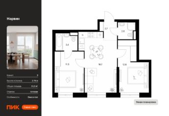 Новостройка! Продается 2-комн. кв-ра площадью 51,5 кв.м, (Корпус 1.3, Секция 3) 15 этаж 38-этажного дома в Нарвин от ПИК. Новый проект ПИК Серии плюс "Нарвин" возводится в Головинском районе Москвы.