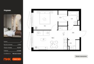 Новостройка! Продается 1-комн. кв-ра площадью 40,8 кв.м, (Корпус 1.3, Секция 3) 30 этаж 38-этажного дома в Нарвин от ПИК. Новый проект ПИК Серии плюс "Нарвин" возводится в Головинском районе Москвы.