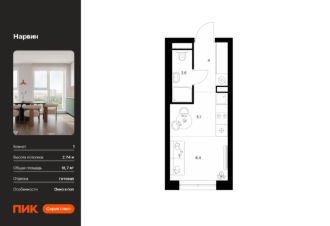 Новостройка! Продается 1-комн. кв-ра площадью 18,7 кв.м, (Корпус 1.3, Секция 3) 15 этаж 38-этажного дома в Нарвин от ПИК. Новый проект ПИК Серии плюс "Нарвин" возводится в Головинском районе Москвы.