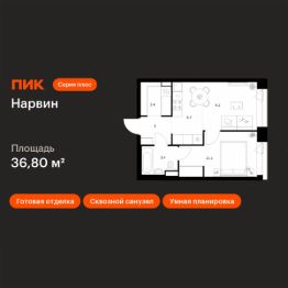 Продаётся 1-комн. квартира площадью 36,8 кв.м на 2 этаже 19 этажного дома (Корпус 1.2, Секция 2) проекта ПИК Нарвин. Светлый просторный подъезд на уровне земли, функциональная планировка, большие окна, c отделкой.