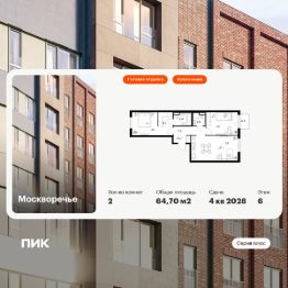Продаётся 2-комн. квартира площадью 64,7 кв.м на 5 этаже 14 этажного дома (Корпус 2.3, Секция 2) проекта ПИК Москворечье. Светлый просторный подъезд на уровне земли, функциональная планировка, большие окна, c отделкой.