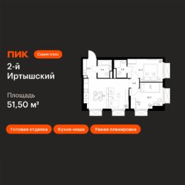 Продаётся 2-комн. квартира площадью 51,5 кв.м на 15 этаже 20 этажного дома (Корпус 1.7, Секция 7) проекта ПИК 2-й Иртышский. Светлый просторный подъезд на уровне земли, функциональная планировка, большие окна, c отделкой.