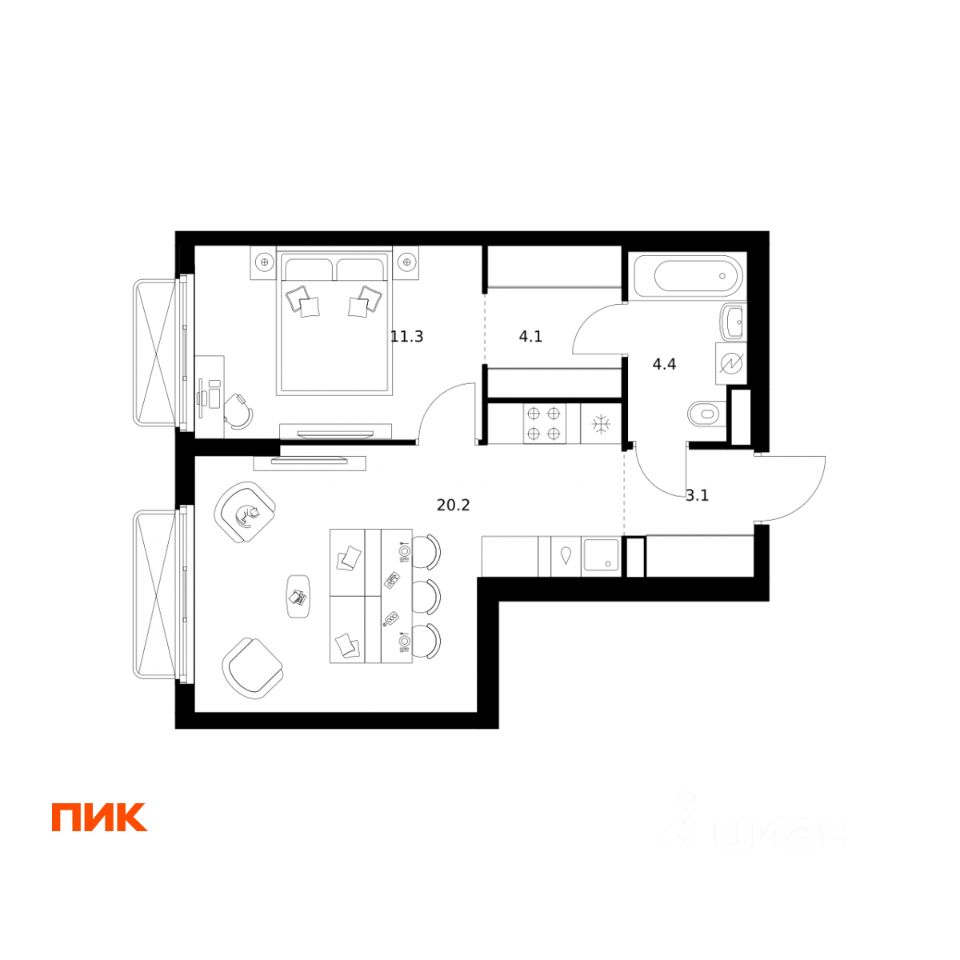 Продаётся 1-комн. квартира площадью 43,1 кв.м на 21 этаже 26 этажного дома (Корпус 1.5, Секция 5) проекта ПИК 2-й Иртышский. Светлый просторный подъезд на уровне земли, функциональная планировка, большие окна, c отделкой.
