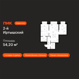 Продаётся 2-комн. квартира площадью 54,2 кв.м на 13 этаже 30 этажного дома (Корпус 1.3, Секция 3) проекта ПИК 2-й Иртышский. Светлый просторный подъезд на уровне земли, функциональная планировка, большие окна, c отделкой.