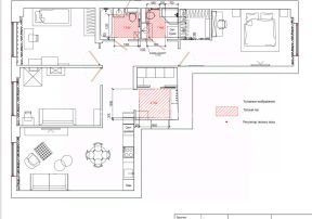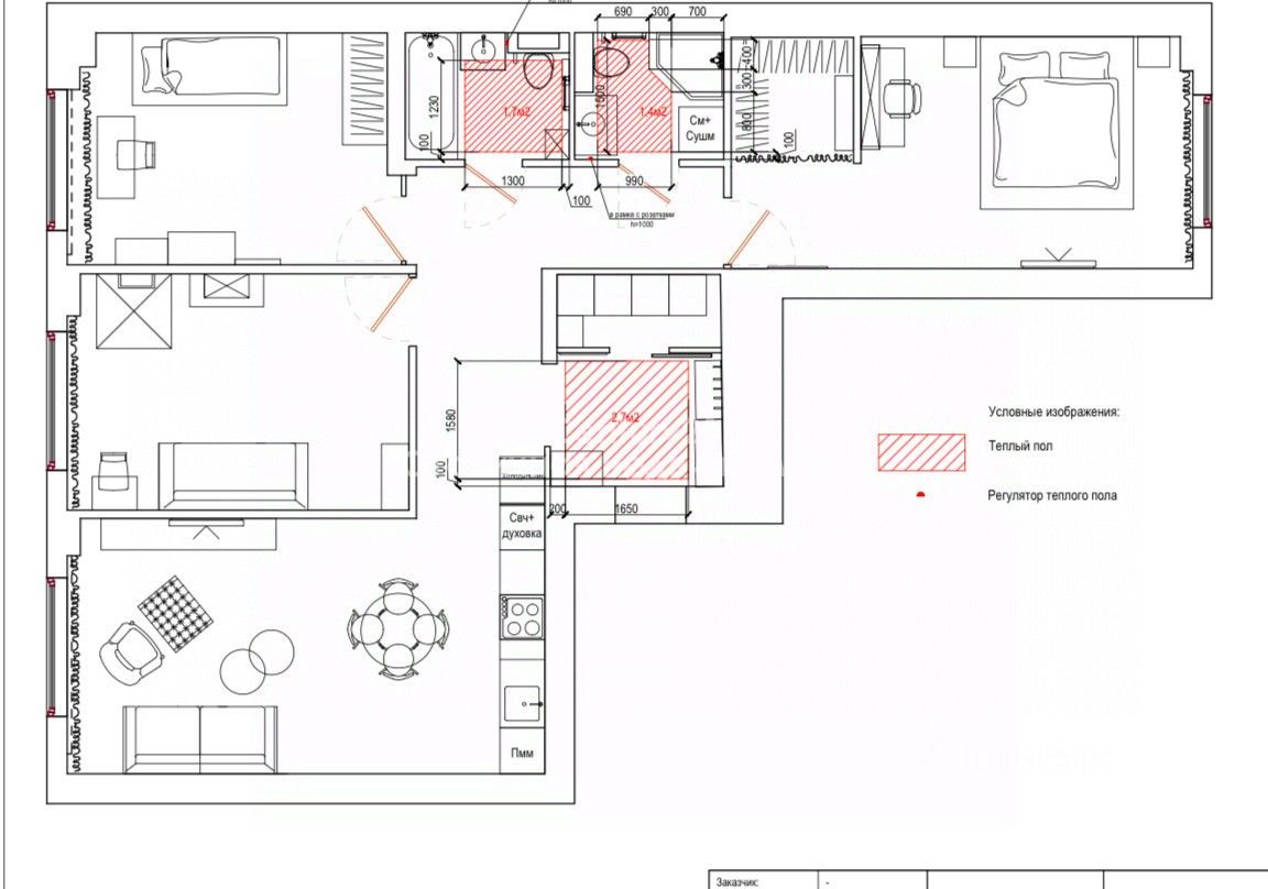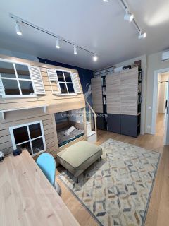 Современный ремонт выполнен по индивидуальному дизайн проекту, с использованием качественных материалов. Квартира оборудована кухонной зоной, зонами отдыха , спальными местами и местами хранения вещей. В каждой комнате кондиционеры.( их 4), а также система вентиляции и очистки воздуха. В санузлах установлен проточный водонагреватель ( для него отдельно проложен силовой кабель).