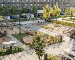 Все корпуса в квартале гармонично сочетаются, образуя единую городскую среду. Между собой их объединяет невысокая этажность и натуральная цветовая гамма. Здесь приятно гулять и проводить время на улице всей семьёй.