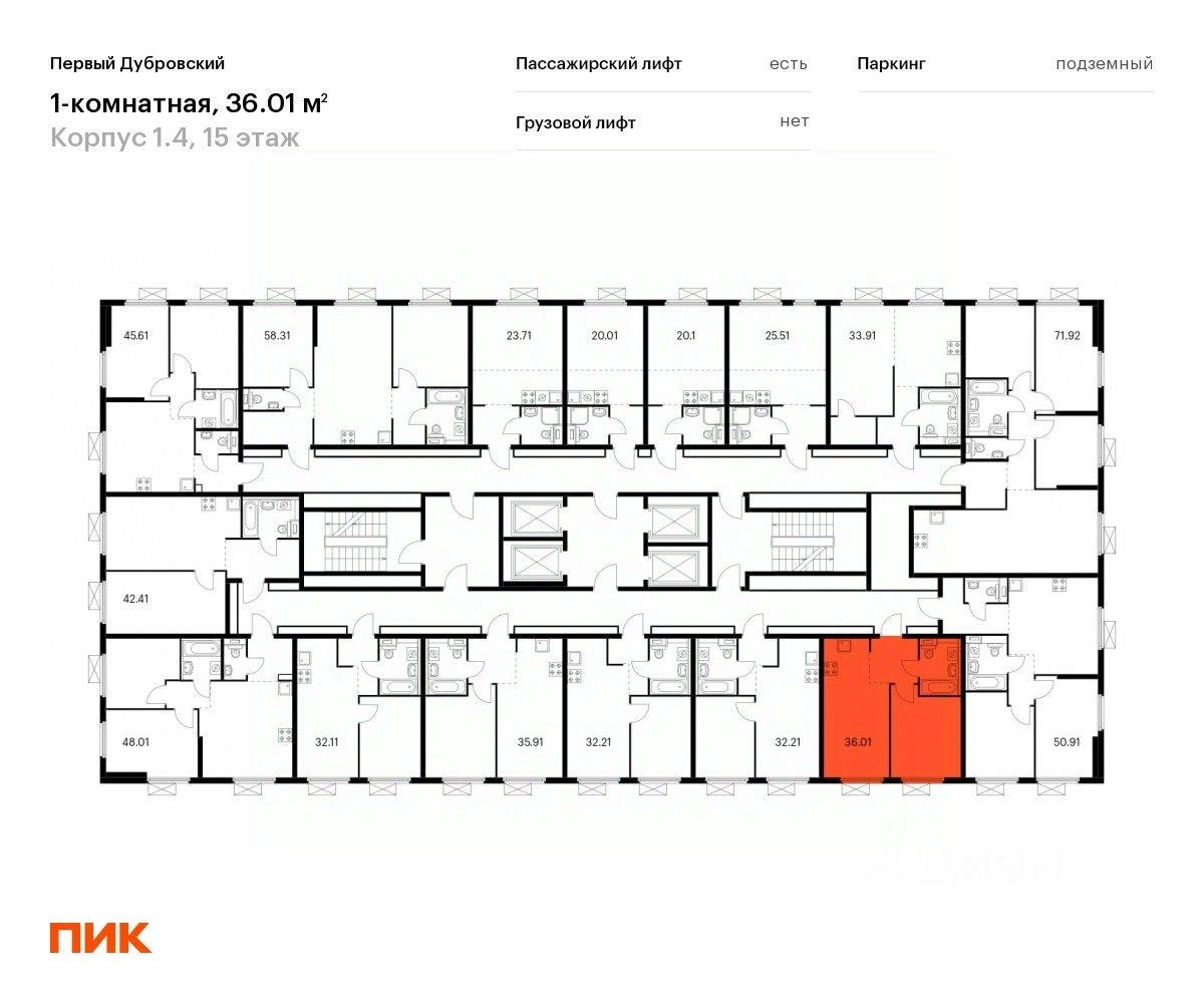 Продаётся 1-комн. квартира площадью 36,01 кв.м на 15 этаже 38 этажного дома (Корпус 1.4, Секция 2) проекта ПИК Первый Дубровский. Светлый просторный подъезд на уровне земли, функциональная планировка, большие окна, c отделкой.