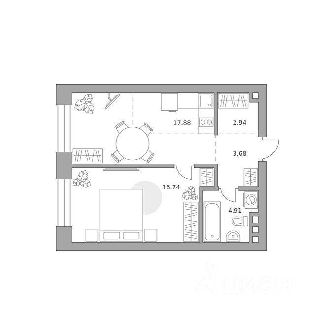 Продаётся 1-комнатная квартира 787, площадью 46,15 м², на 22 этаже в ЖК "MYPRIORITY Павелецкая" корпус 2. Стоимость — от 33125419 руб. Квартира без отделки, планировка односторонняя, окна на улицу.