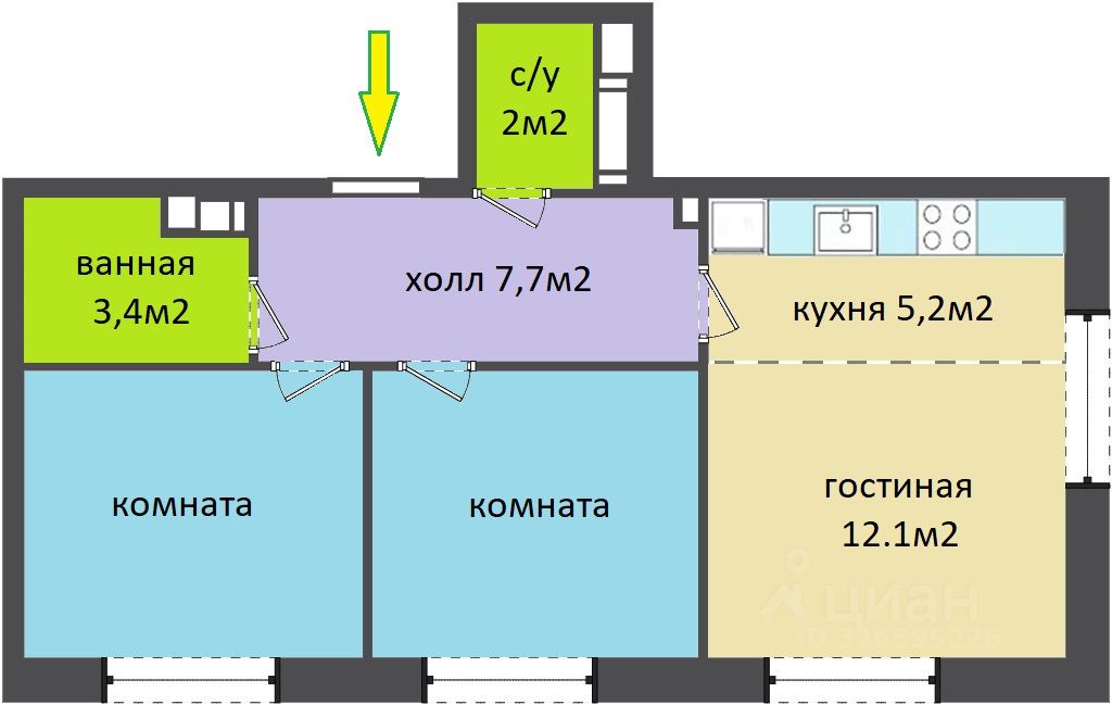 Также у меня в продаже соседняя евродвушка 37м2 (кв 351).