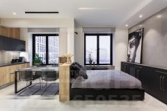 Эргономичное пространство четко разделено на общую и приватные зоны. Отделка выполнена в лаконичной, сдержанной палитре - идеальный образец современного urban-стиля с атмосферой уюта и спокойствия, где все продумано для комфортного проживания.