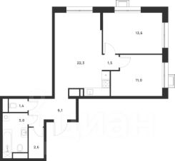 Общая площадь: 64,3 кв.м., жилая: 39,8 кв.м., площадь кухни-гостиной: 22,3 кв.м., высота потолков: 2,72 м., окна выходят во двор и на улицу.