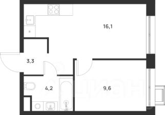 Общая площадь: 33,2 кв.м., жилая: 20,1 кв.м., площадь кухни-гостиной: 16,1 кв.м., высота потолков: 2,72 м., окна выходят на улицу.
