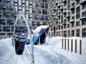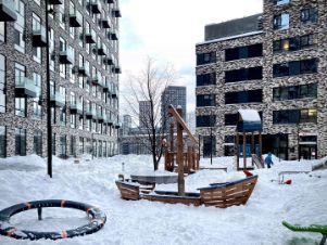 Двор-парк: Двухуровневая пешеходная территория с амфитеатром, воркаут-зонами, коворкингом на свежем воздухе и островками тишины в зелени.