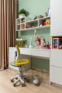 1. Мастер-детская - отдельный выделенный блок в квартире для ребенка со своим с/у в котором есть как ванная, так и душевая кабина, множество зон хранения для детских вещей и шикарным панорамным видом на лесопарковую зону.