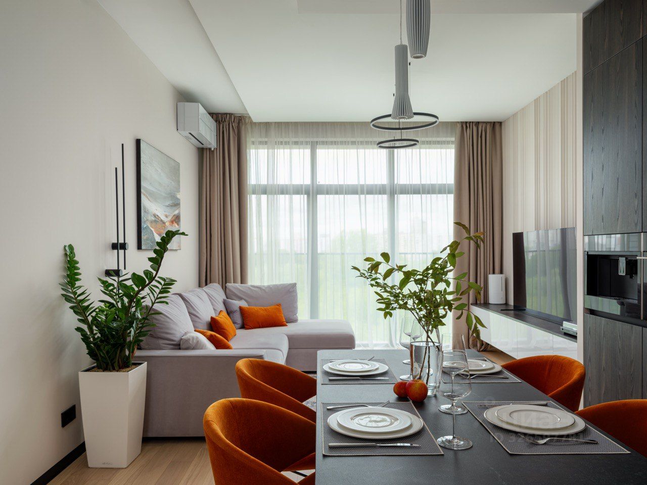 3. Кухня-гостиная - полностью укомплектованная кухня со всей мебелью и техникой, встроенная кофемашина, встроенный двухдверный холодильник системы Side-by-Side, духовка с функцией микроволновки и пароварки, посудомойка, антивандальные покрытия фасадов и керамическая испанская столешница. Есть все!