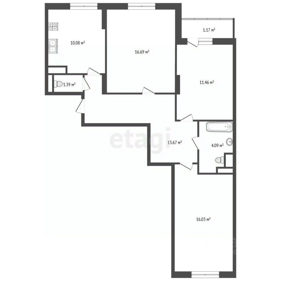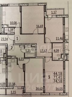 Площадь квартиры 72м²