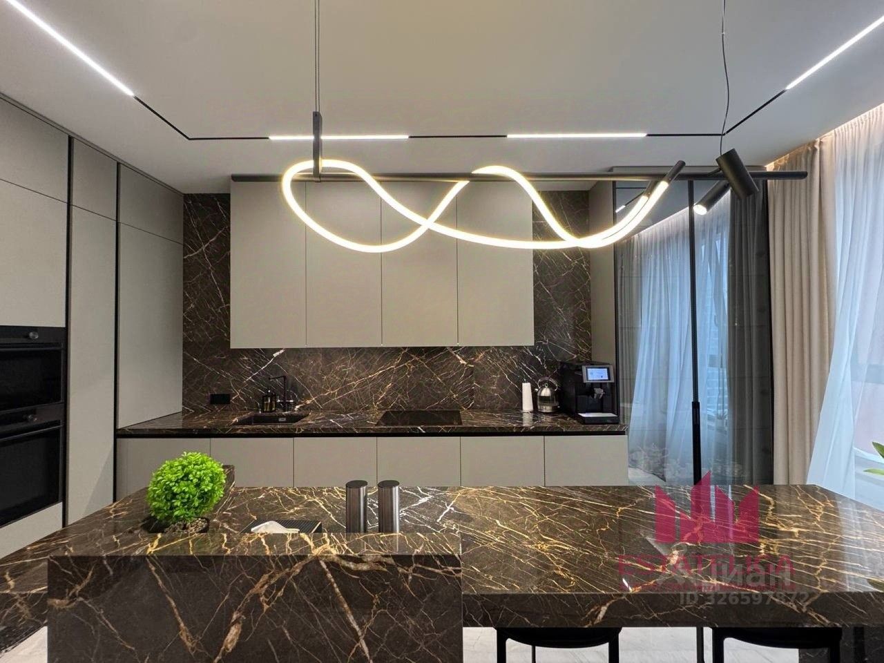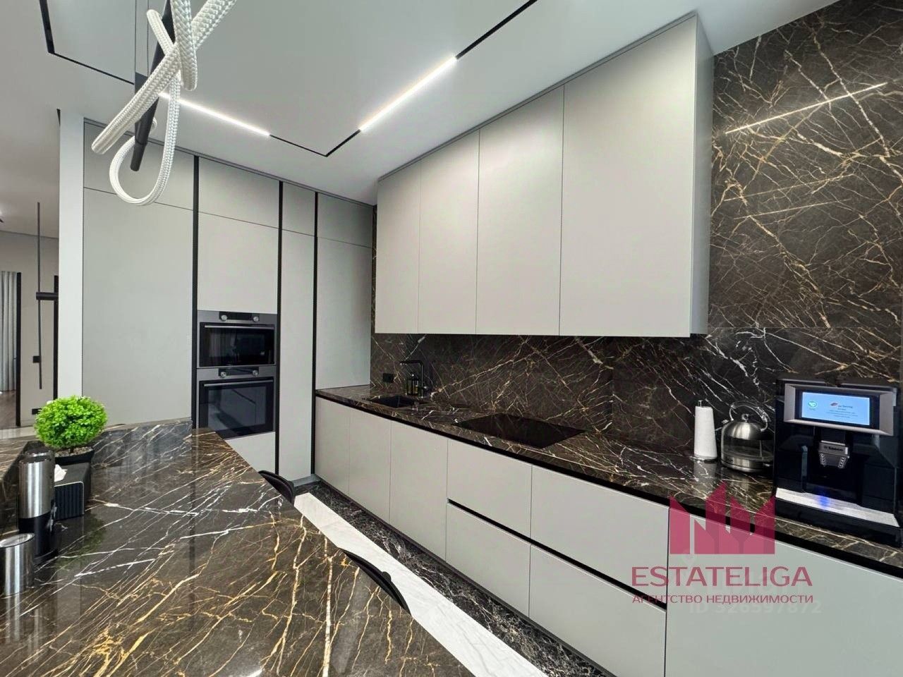 Планировка, зонирование пространства, мебелированние и техническое оснащение продумано до мелочей. Мраморные столешницы, встроенная шведская техника "Asko"- для истинных ценителей качества.