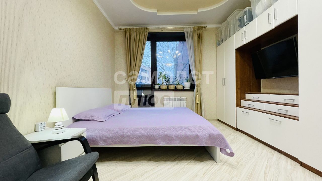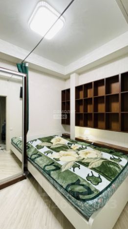В квартире выполнен евроремонт. Планировка: просторная кухня, маленькая смежная комната, большая комната, совмещенный санузел. Предусмотрен теплый пол.