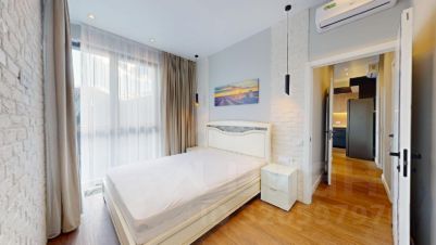 Это идеальное пространство для тех, кто ценит функциональность и удобство. Интерьер квартиры выполнен с дизайнерским вкусом по проекту, что придаёт ей особый шарм и индивидуальность.