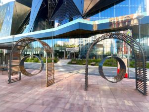 Окна квартиры выходят во двор, где расположен центр Художественной Гимнастики Ирины Винер, Академия единоборств Камила Гаджиева (самбо, дзюдо, бокс и др.). Рядом благоустроенный парк для прогулок, площадки для спорта и отдыха, что создаёт атмосферу уюта и спокойствия.