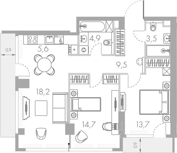 Спальня с лоджией: 13,7 м²