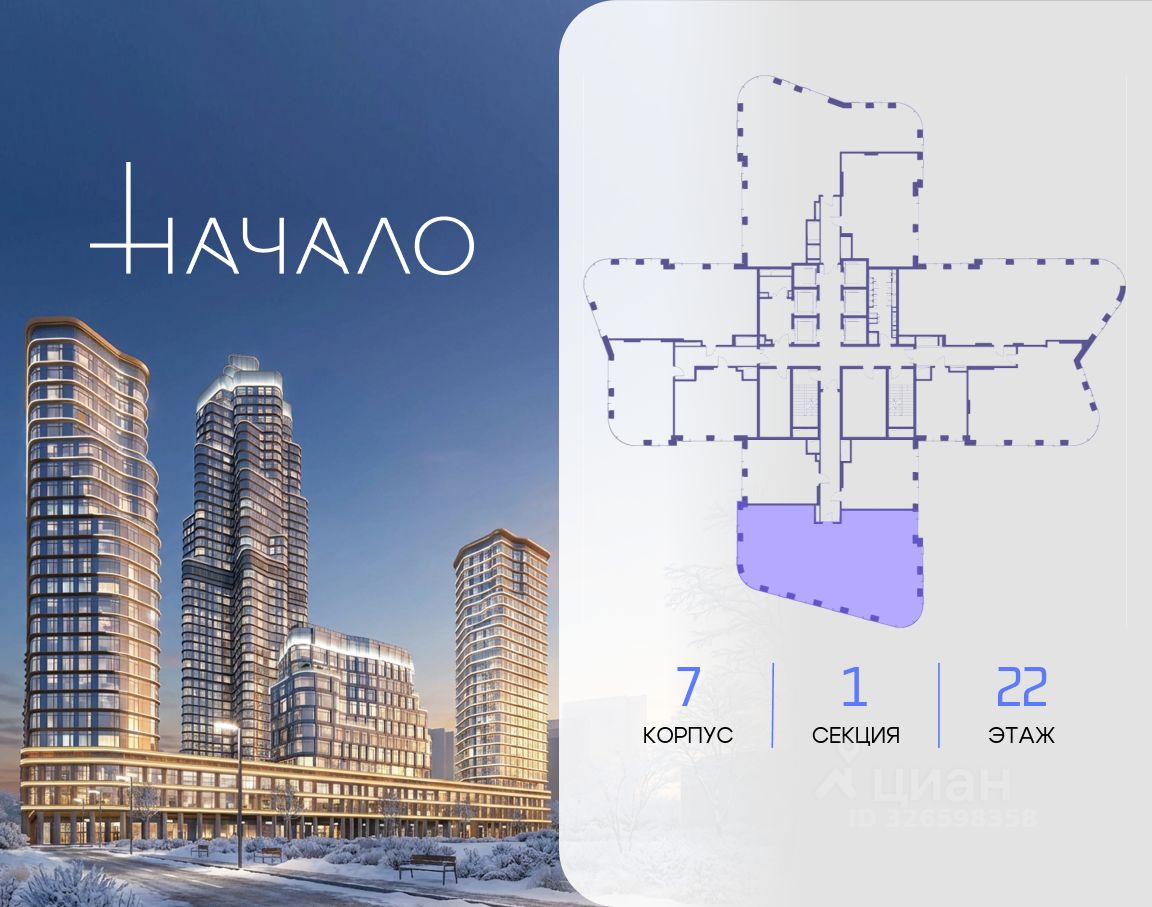 В престижном районе Пресня, на перекрестке делового и исторического центров Москвы, продается четырехкомнатная квартира площадью 190.30 кв. м без отделки. Квартира находится на 22 этаже 48-этажного дома, в новом элитном жилом комплексе "Начало" от девелопера "Донстрой". Реализация проекта запланирована на 1 квартал 2030 года.