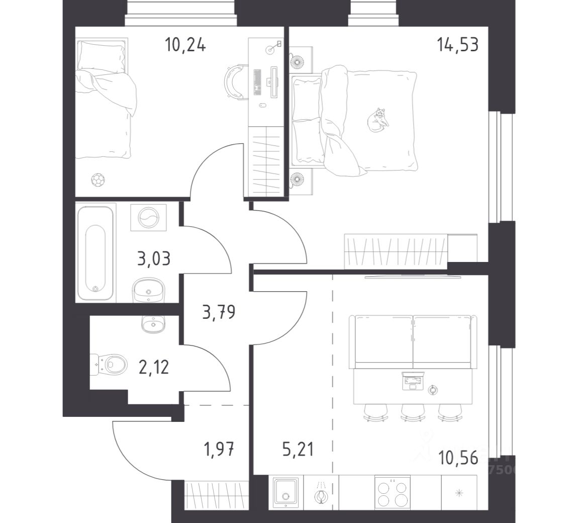 А если не хочется тратить время на ремонт, можно выбрать опцию — с отделкой. Перед тем как отдать ключи, застройщик установит натяжные потолки, поклеит обои под покраску, положит ламинат светлых тонов, а в санузлах — керамическую плитку и керамогранит.