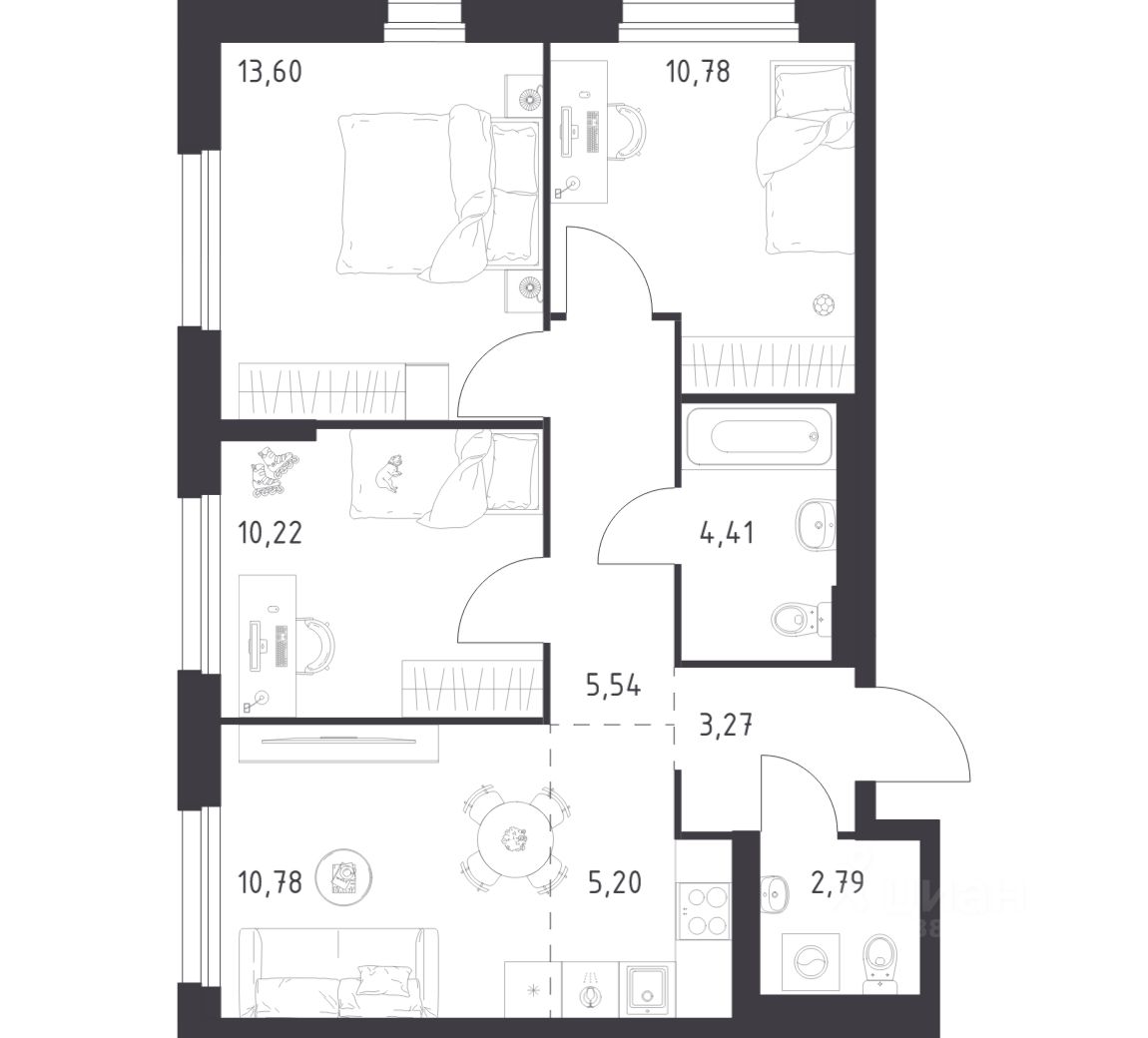 Строим кварталы для жизни с заботой о будущем. Предлагается 3-комнатная квартира комфорт-класса площадью 66,59 кв.м в корпусе 35 на 7-м этаже, в жилом комплексе "Новое Внуково".