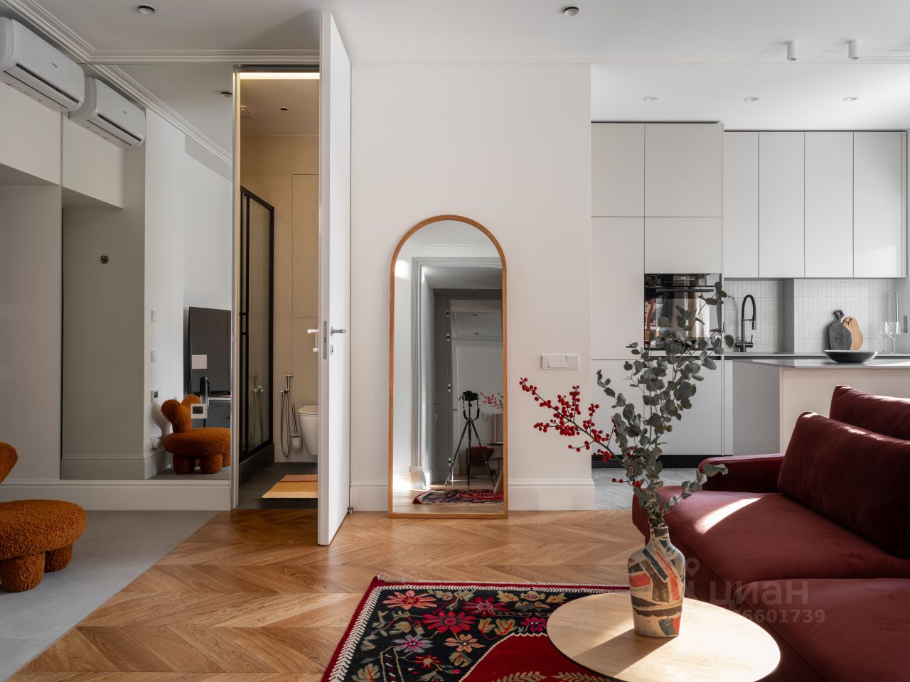Продуманы мелочи: система против протечек, мастер-выключатель, различные сценарии освещения в каждой комнате с настройкой умного дома под себя, тёплый пол под всей зоной плитки, система фильтрации воды, кондиционеры.