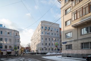 Дом эпохи конструктивизма с толстыми стенами и большими окнами, качественный, продуманный для людей. Всего три квартиры на этаже. Тихие интеллигентные соседи. Это дополнительный комфорт и приватность.