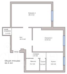 62,4 м²