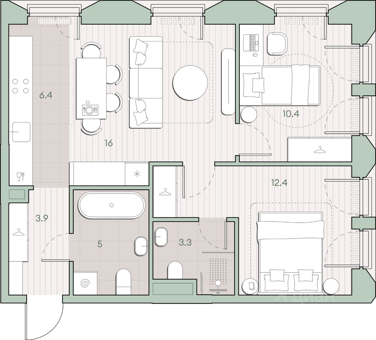 Продаётся 2-комнатная квартира общей площадью 57.4 кв.м. без отделки. Квартира расположена на 13 этаже корпуса 5.1 в жилом комплексе бизнес-класса "Среда на Лобачевского" в пешей доступности от метро "Аминьевская".