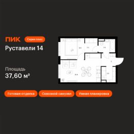 Продаётся 1-комн. квартира площадью 37,6 кв.м на 9 этаже 21 этажного дома (Корпус 3.5, Секция 1) проекта ПИК Руставели 14. Светлый просторный подъезд на уровне земли, функциональная планировка, большие окна, c отделкой.