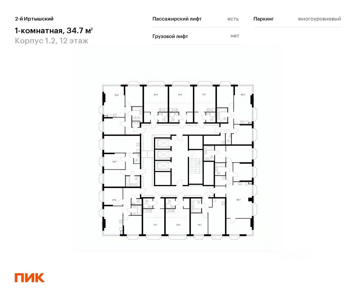 Продаётся 1-комн. квартира площадью 34,7 кв.м на 12 этаже 19 этажного дома (Корпус 1.2, Секция 2) проекта ПИК 2-й Иртышский. Светлый просторный подъезд на уровне земли, функциональная планировка, большие окна, c отделкой.