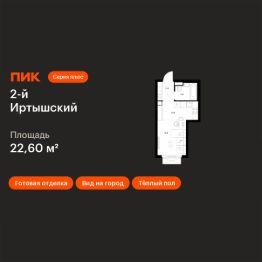 Продаётся квартира-студия площадью 22,6 кв.м на 11 этаже 20 этажного дома (Корпус 1.7, Секция 7) проекта ПИК 2-й Иртышский. Светлый просторный подъезд на уровне земли, функциональная планировка, большие окна, c отделкой.