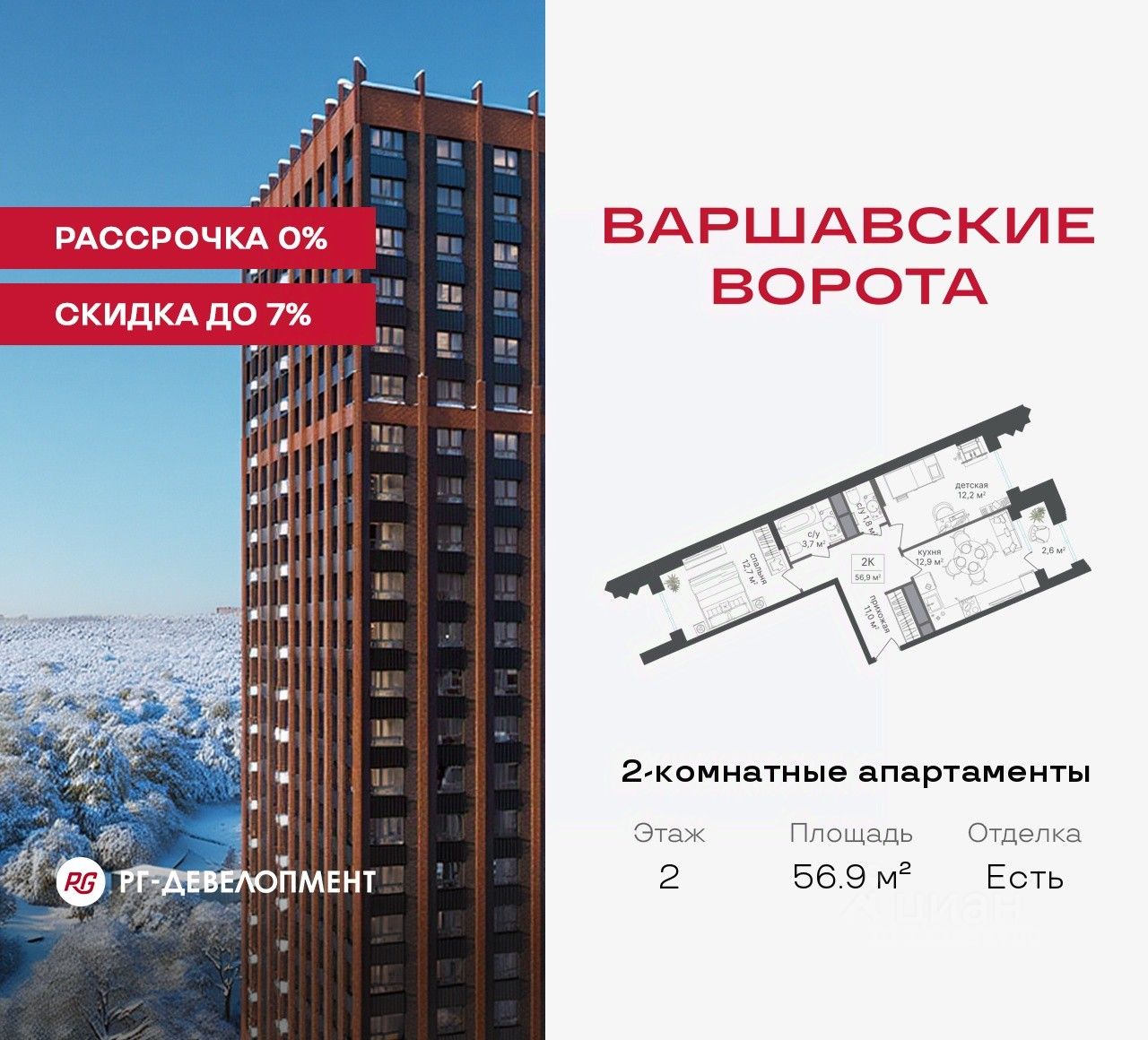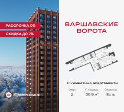 Продаются 2-комнатные апартаменты 56.9 кв.м. в МФК "Варшавские ворота" на 2-м этаже 9 этажного дома. МФК "Варшавские ворота" — это проект, в котором учтен широкий спектр требований: от транспортной доступности и развитой инфраструктуры до архитектурной выразительности и экологического окружения.