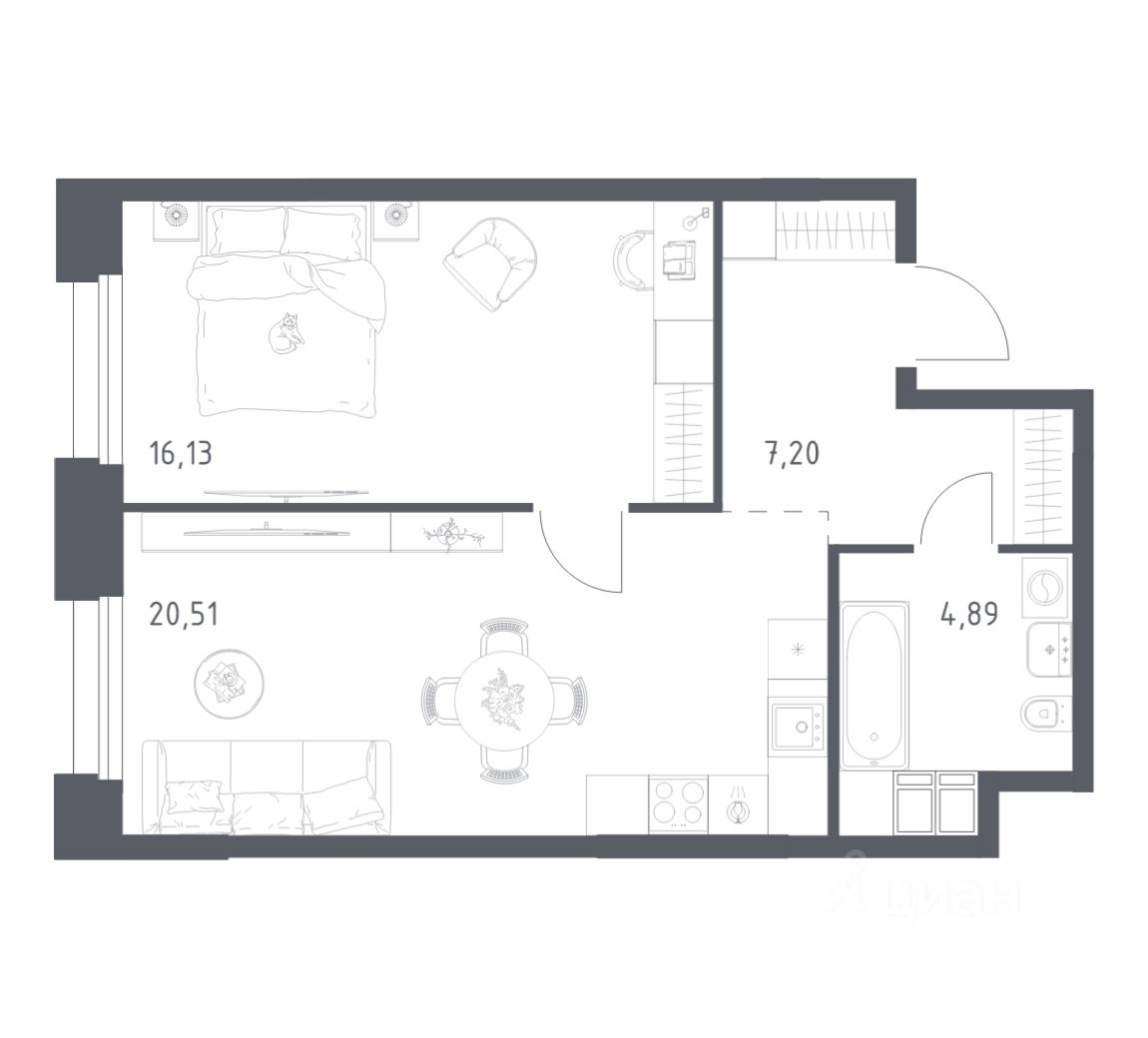 Строим кварталы для жизни с заботой о будущем. Предлагаются 1-комнатные апартаменты бизнес-класса площадью 48,73 кв.м в корпусе 2.3 на 14-м этаже, в жилом комплексе "Тропарево Парк".