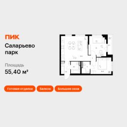 Продаётся 2-комн. квартира площадью 55,4 кв.м на 17 этаже 18 этажного дома (Корпус 74.9, Секция 9) проекта ПИК Саларьево парк. Светлый просторный подъезд на уровне земли, функциональная планировка, большие окна, c отделкой.