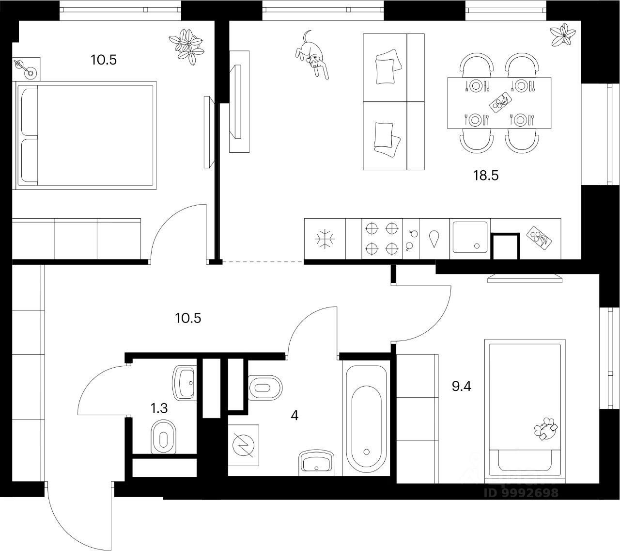 Продаётся 2-комн. квартира площадью 54,2 кв.м на 7 этаже 16 этажного дома (Корпус 82.5, Секция 5) проекта ПИК Саларьево парк. Светлый просторный подъезд на уровне земли, функциональная планировка, большие окна, предчистовая отделка.