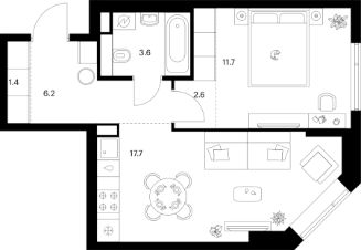 Продаётся 1-комн. квартира площадью 43,2 кв.м на 6 этаже 16 этажного дома (Корпус 82.2, Секция 2) проекта ПИК Саларьево парк. Светлый просторный подъезд на уровне земли, функциональная планировка, большие окна, c отделкой.